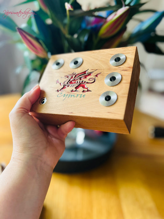 The Welsh flag of freedom desk stand in hardwood with stainless 510