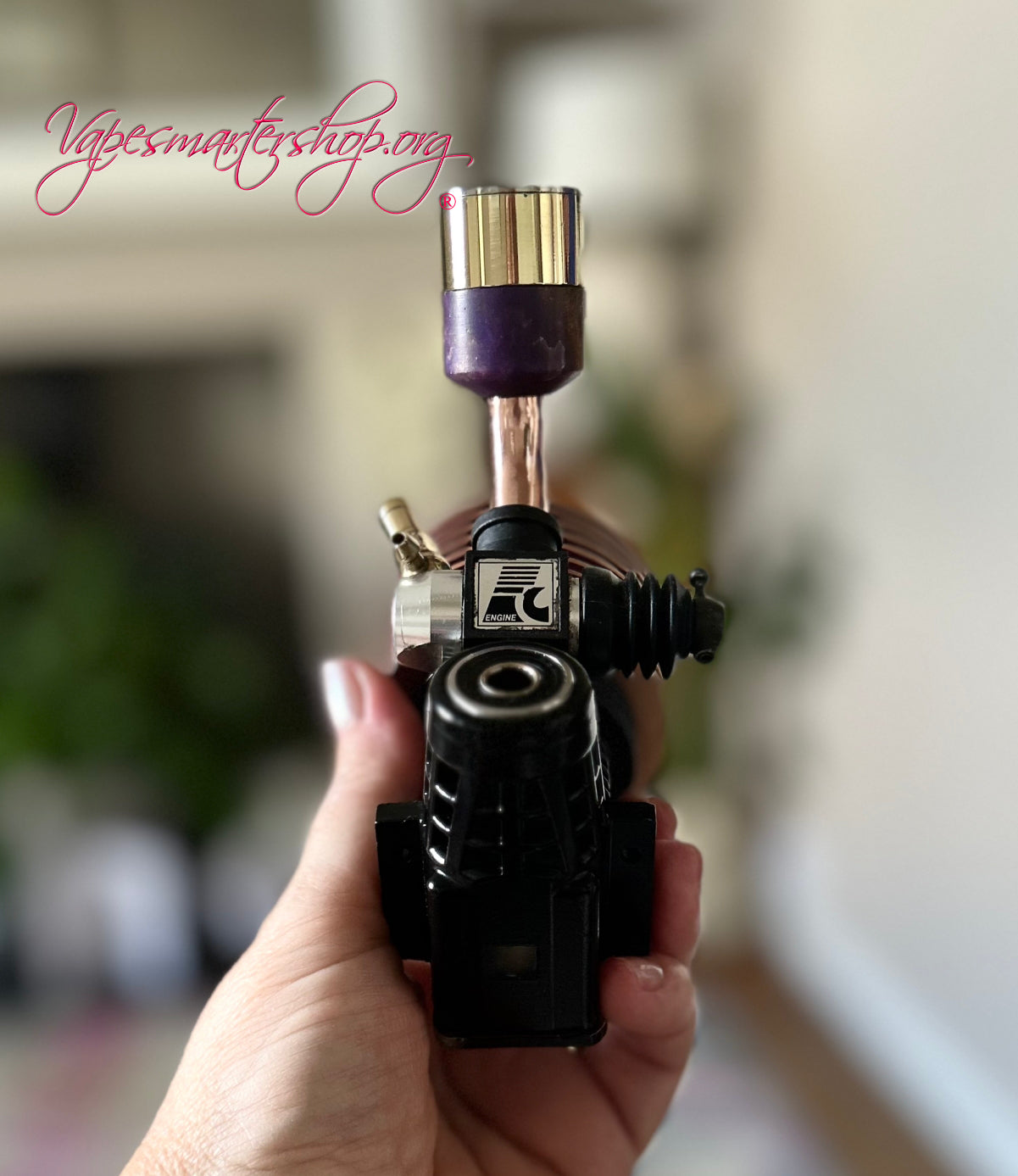 Experience a unique fusion of engineering and vaping with this one-of-a-kind e-pipe, crafted from a genuine small nitro engine. Featuring a short stem and a switched mechanical clickfet design, it offers precise control and reliability. Compatible with 18650 batteries and 24mm tanks, this expertly converted device delivers a distinctive blend of mechanical craftsmanship and modern vaping technology for enthusiasts seeking an exclusive, high-performance setup.