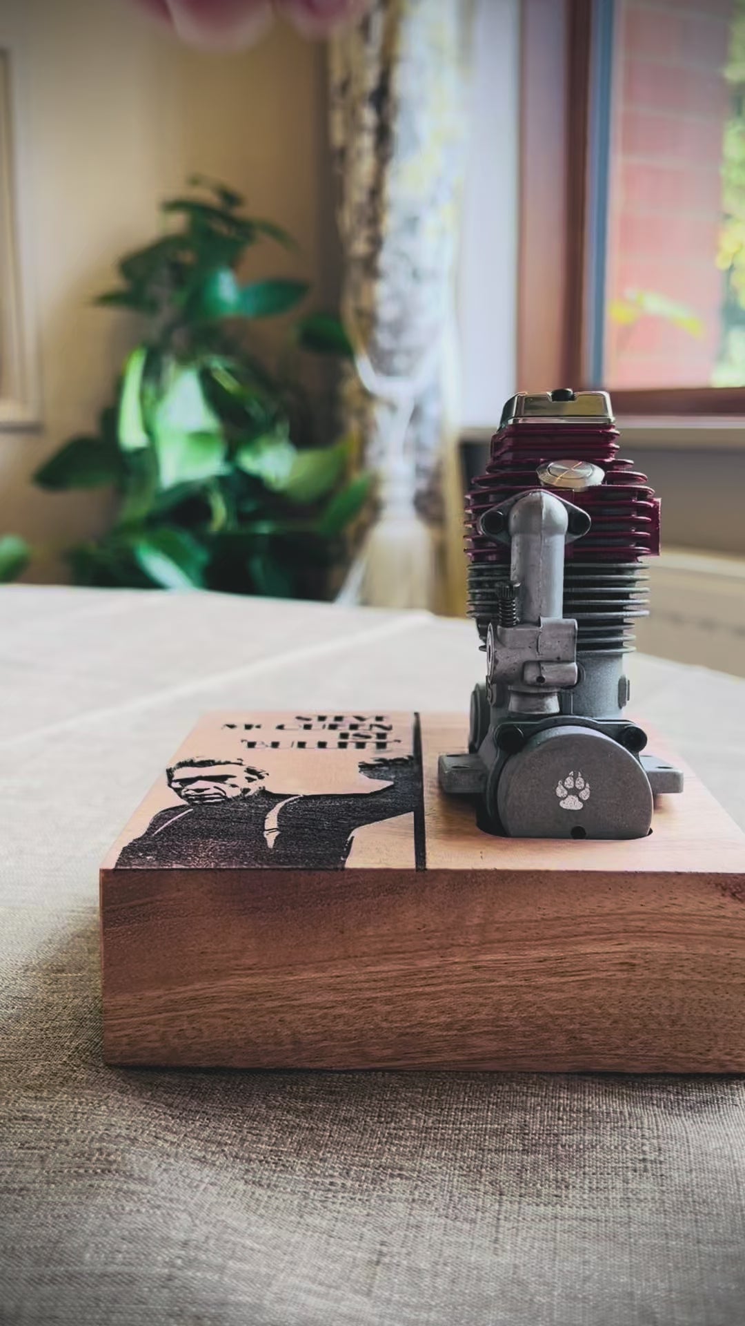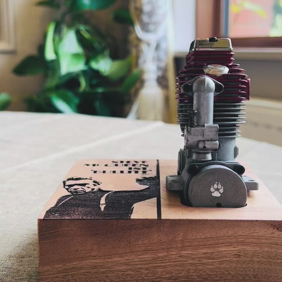 Experience a unique fusion of engineering and vaping with this one-of-a-kind e-pipe, crafted from a genuine small nitro engine. Featuring a short stem and a switched mechanical clickfet design, it offers precise control and reliability. Compatible with 18650 batteries and 24mm tanks, this expertly converted device delivers a distinctive blend of mechanical craftsmanship and modern vaping technology for enthusiasts seeking an exclusive, high-performance setup.