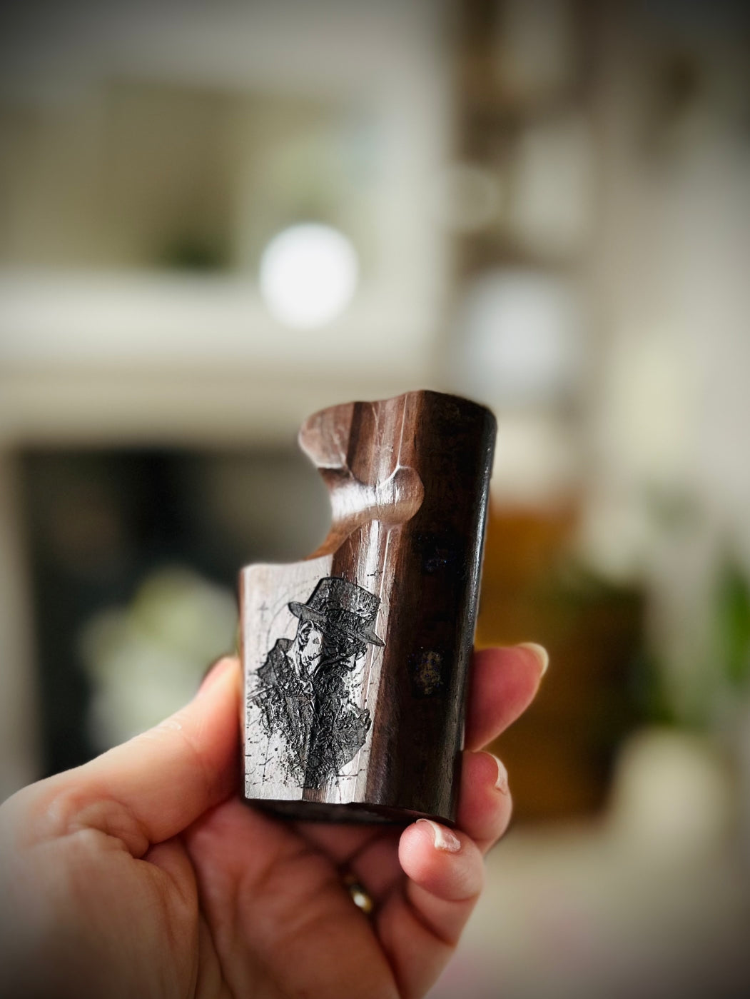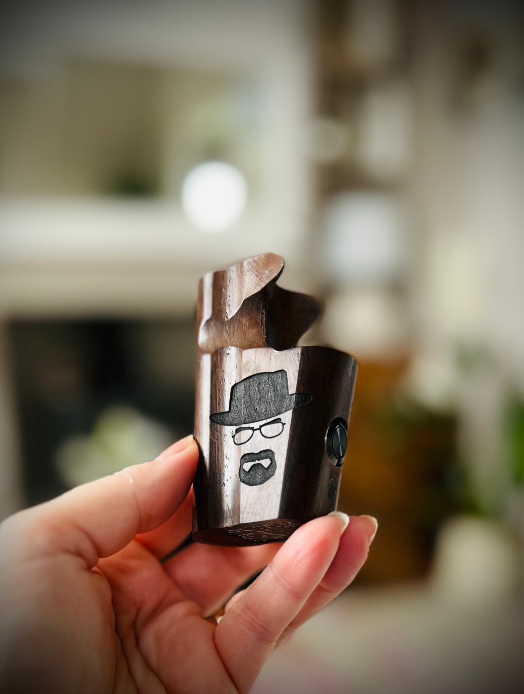 A SBS Single 18650 switched Mech pure wood engraved edition Clickfet mod