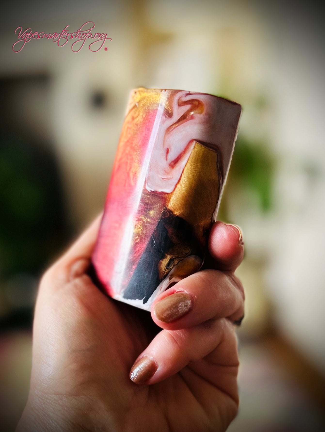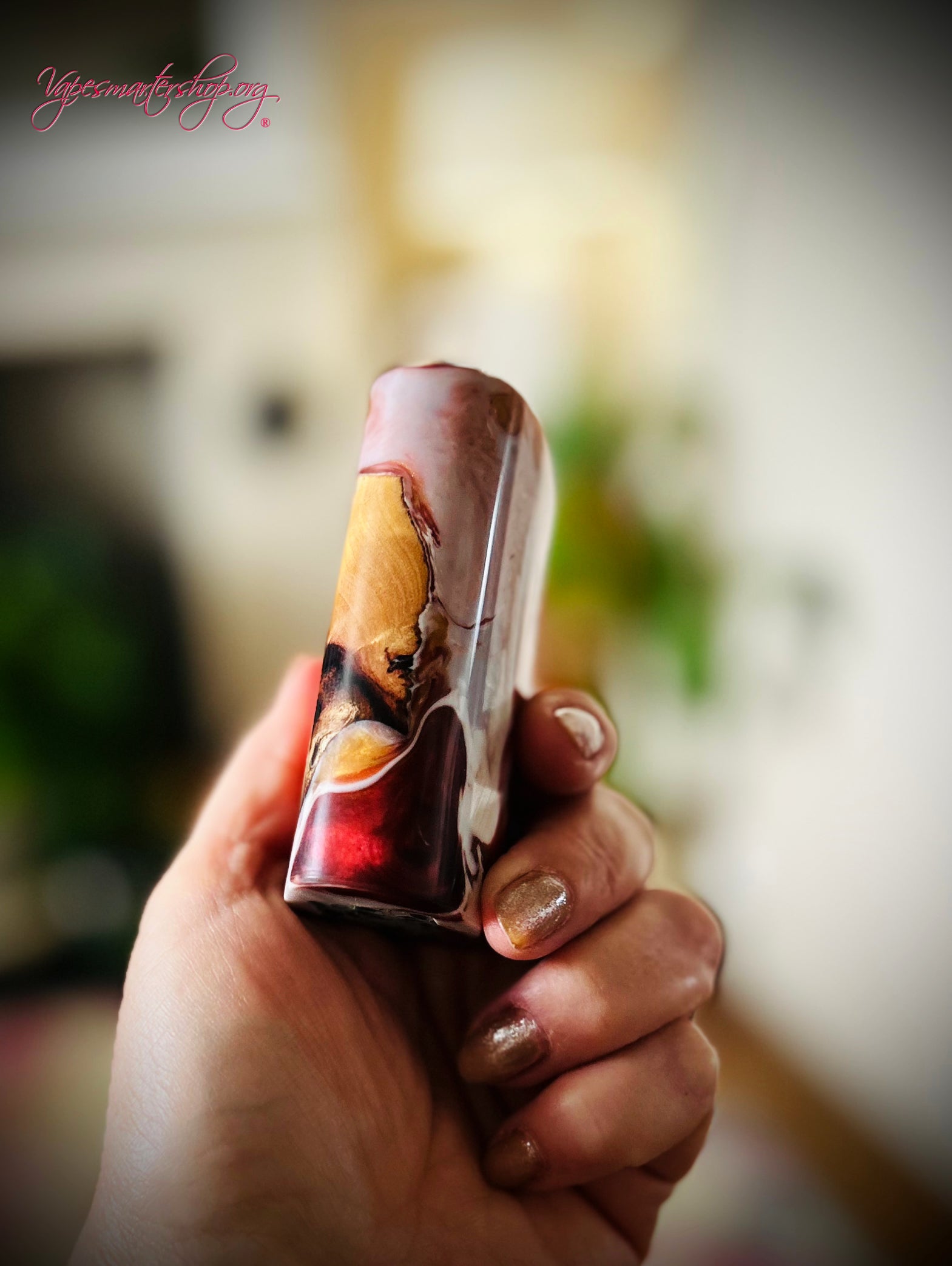 Expertly handcrafted in the UK by a small family business, the Switched Mech Clickfet engraved 18650 Battery Stabwood Hybrid Boro Mod offers an unregulated but safe vaping experience with its unique hybrid design and built-in safety features. Elevate your vaping game with this premium device.