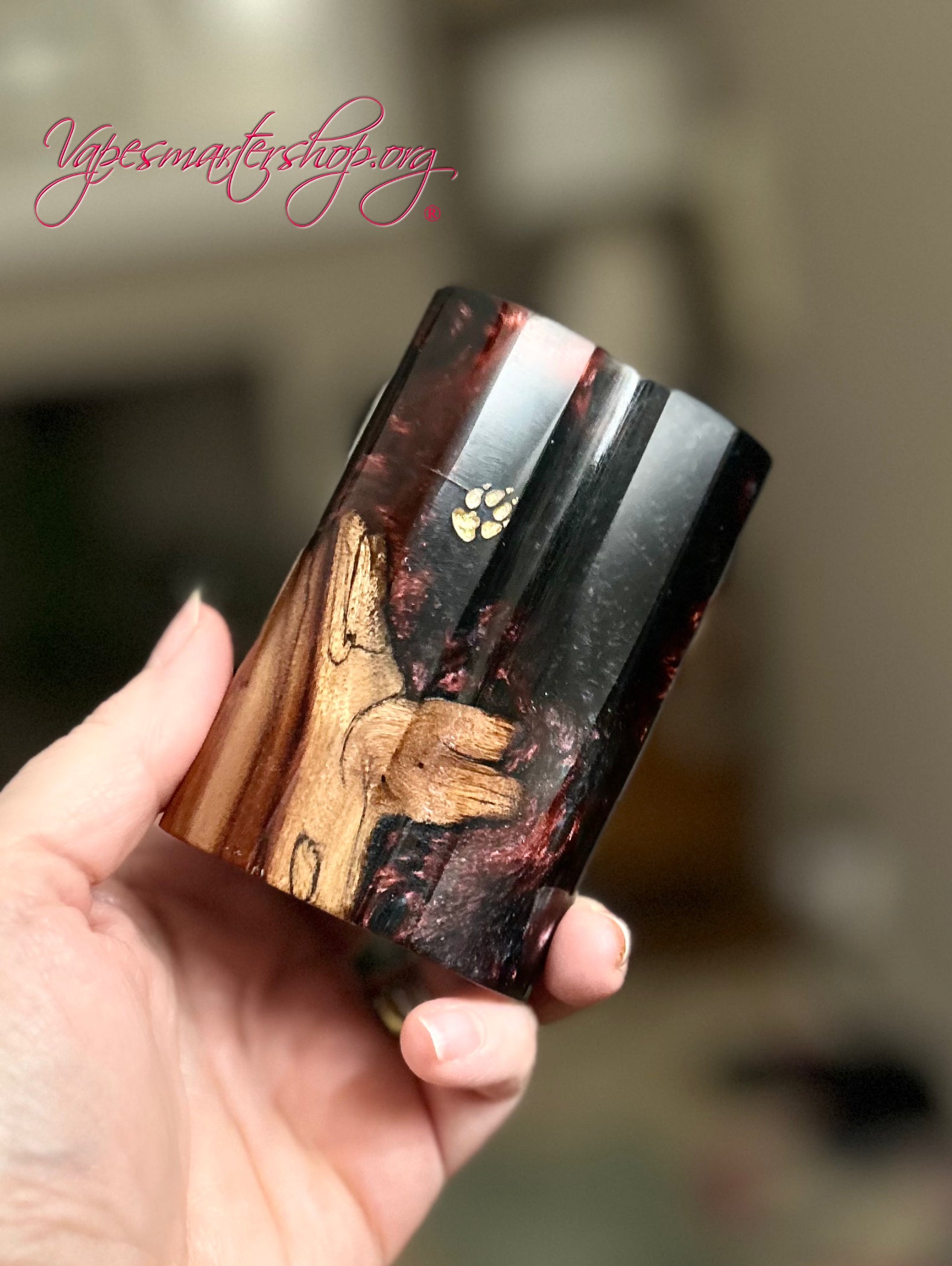 Enhance your vaping experience with the Twin 21700 Battery Dna250c stabwood Mod Engraved. This high-quality mod boasts long-lasting power and a sleek, professional design. Crafted with precision, it's the perfect choice for any vaping enthusiast. sporting a 30mm tank engraved 510 pure power matched with pure beauty.